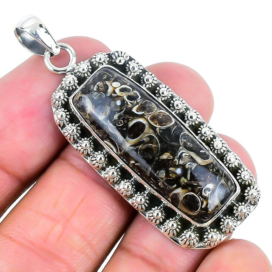 Turritella Fossil Gemstone 925 Solid Silver Wedding Birthday New Pendant Jewelry