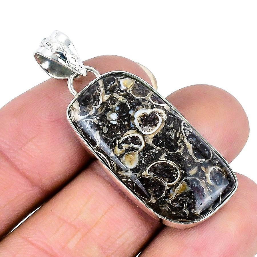 Turritella Fossil Gemstone 925 Sterling Silver New Daughters Day Wedding Pendant