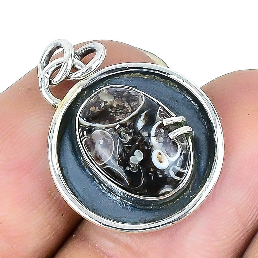Turritella Fossil Gemstone Handmade Birthday Boho Pendant Solid Sterling Silver