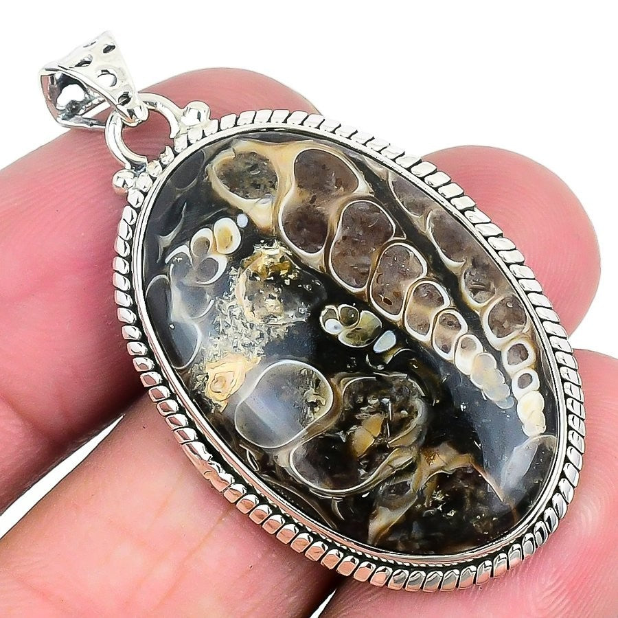 Turtilla Fossil Gemstone 925 Solid Silver Mother Wedding Art Deco Ethnic Pendant