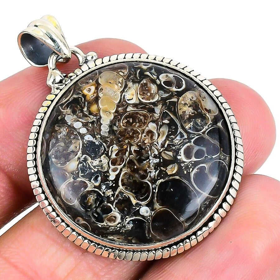 Turtilla Fossil Gemstone 925 Sterling Silver Anniversary Wedding Trendy Pendant