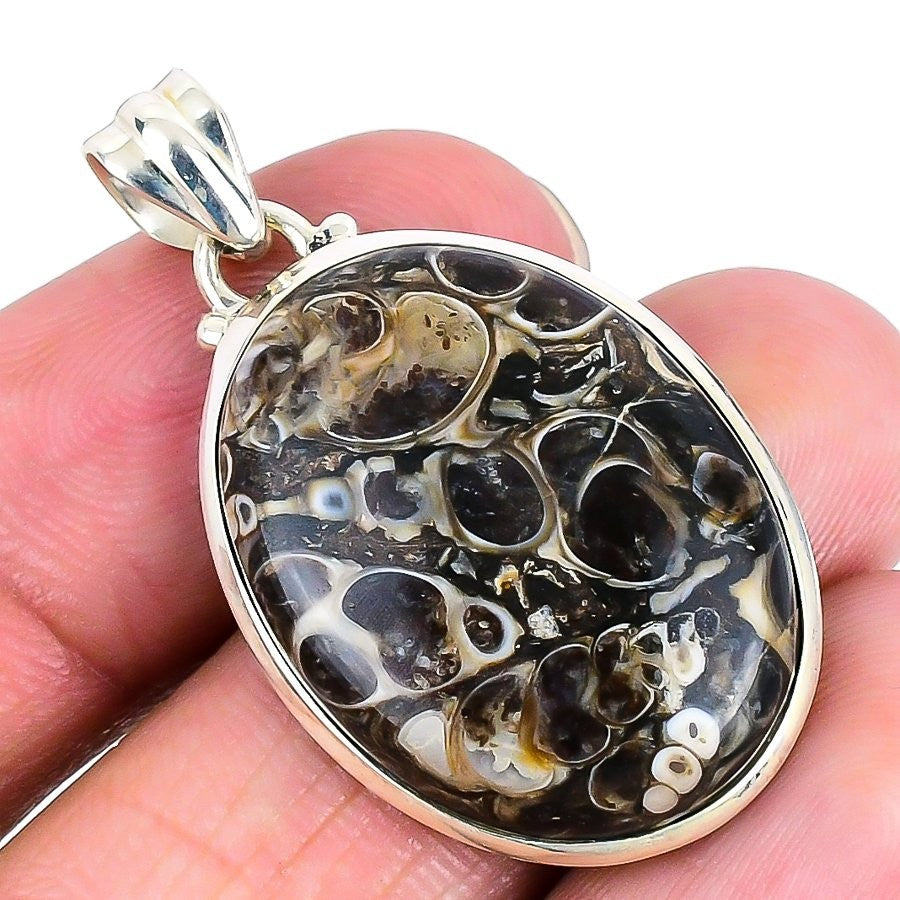 Turtilla Fossil Stone 925 Solid Silver Daughter Gift Mother Trendy New Pendant