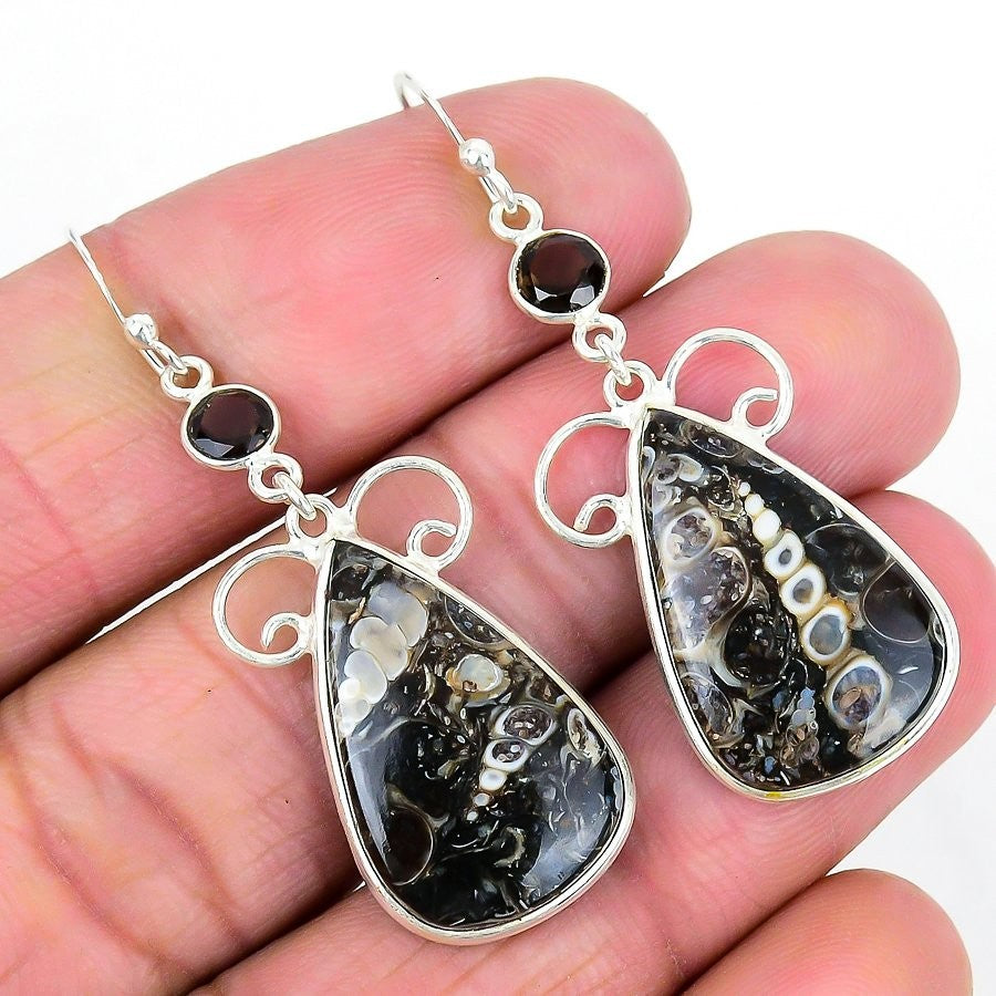 Turtilla Fossil Stone Wedding Dangling Earrings Jewelry Solid Sterling Silver