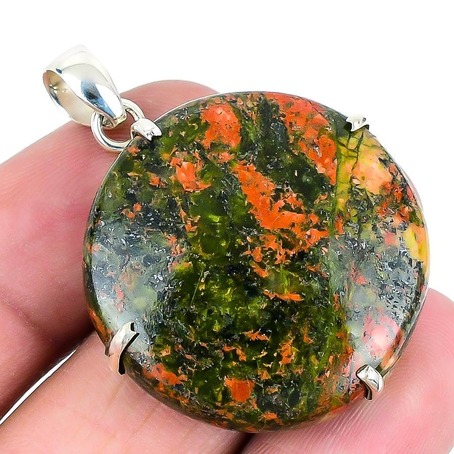 Unakite Stone Daughter Gift Bezel Artisan Elegant New Pendant 925 Solid Silver