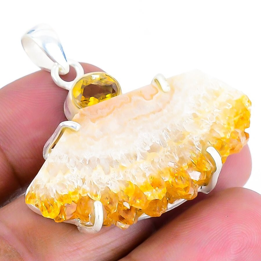 Valentines Deal Citrine Druzy Stone Solid Silver Wife Elegant Engagement Pendant