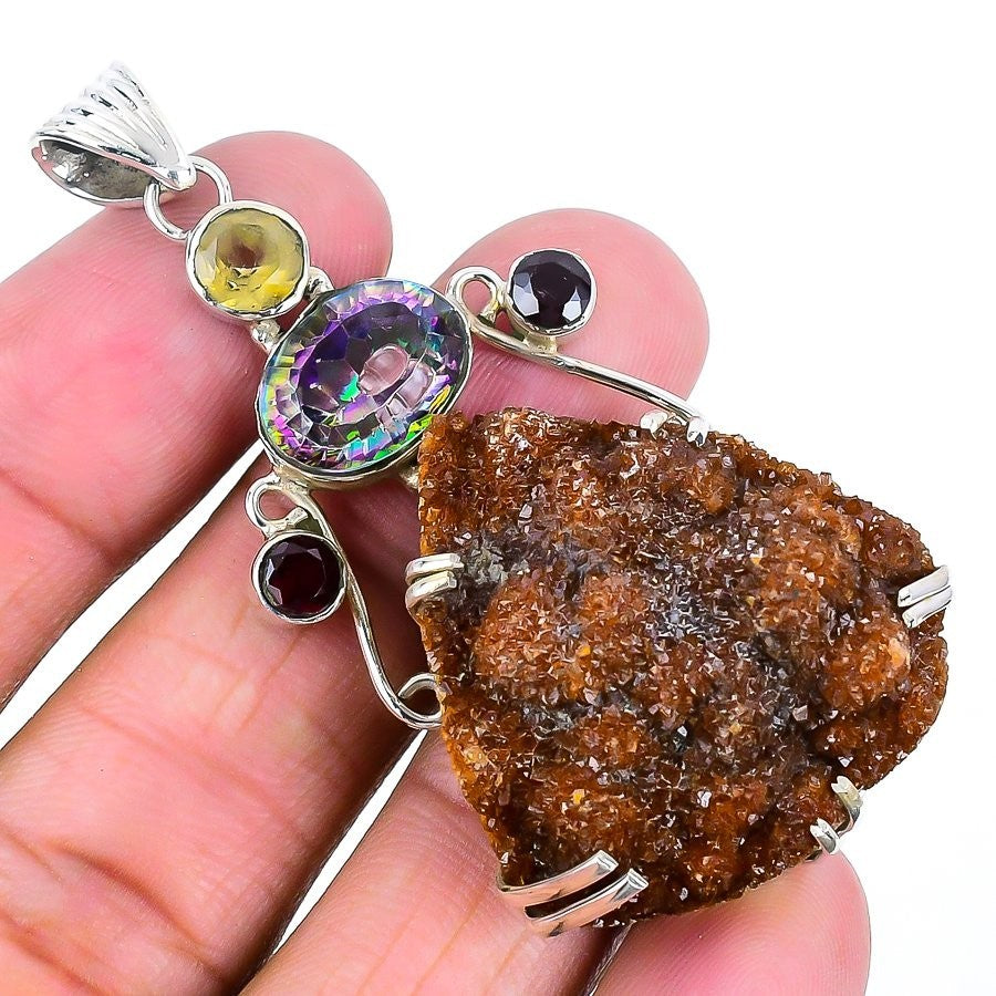 Vanadinite Druzy Gemstone 925 Silver Engagement Best Daughters Gift Wife Pendant