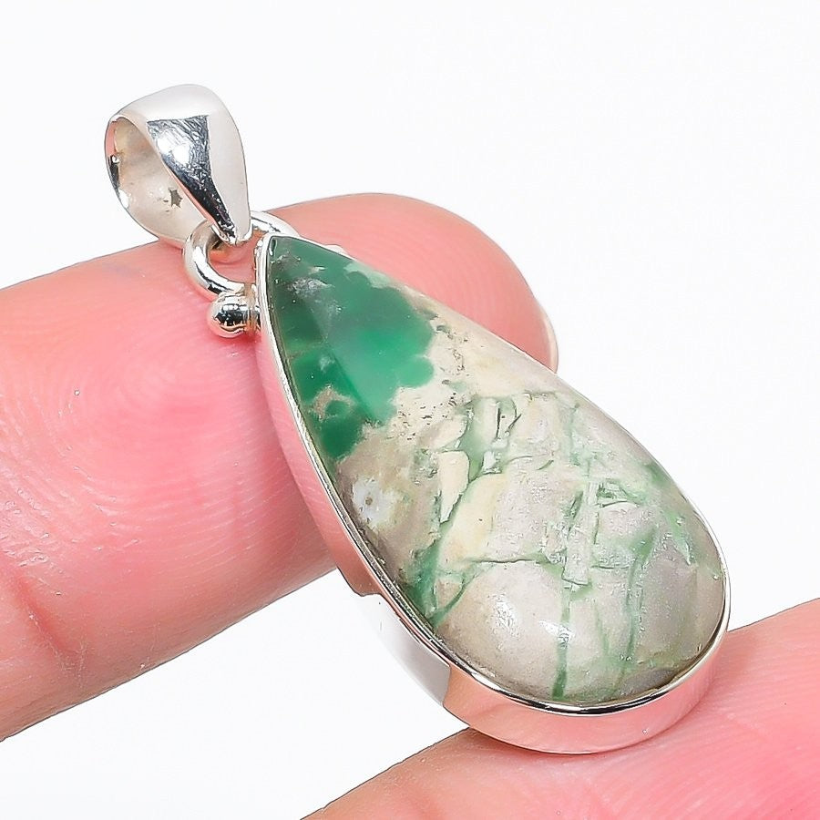 Variscite Gemstone Solid Sterling Silver Elegant Artisan Daughters Day Pendant