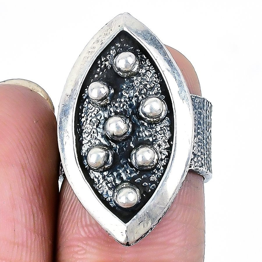 Vintage Look Stone Solid Sterling Silver Wedding Statement Birthday Ring US 6.5
