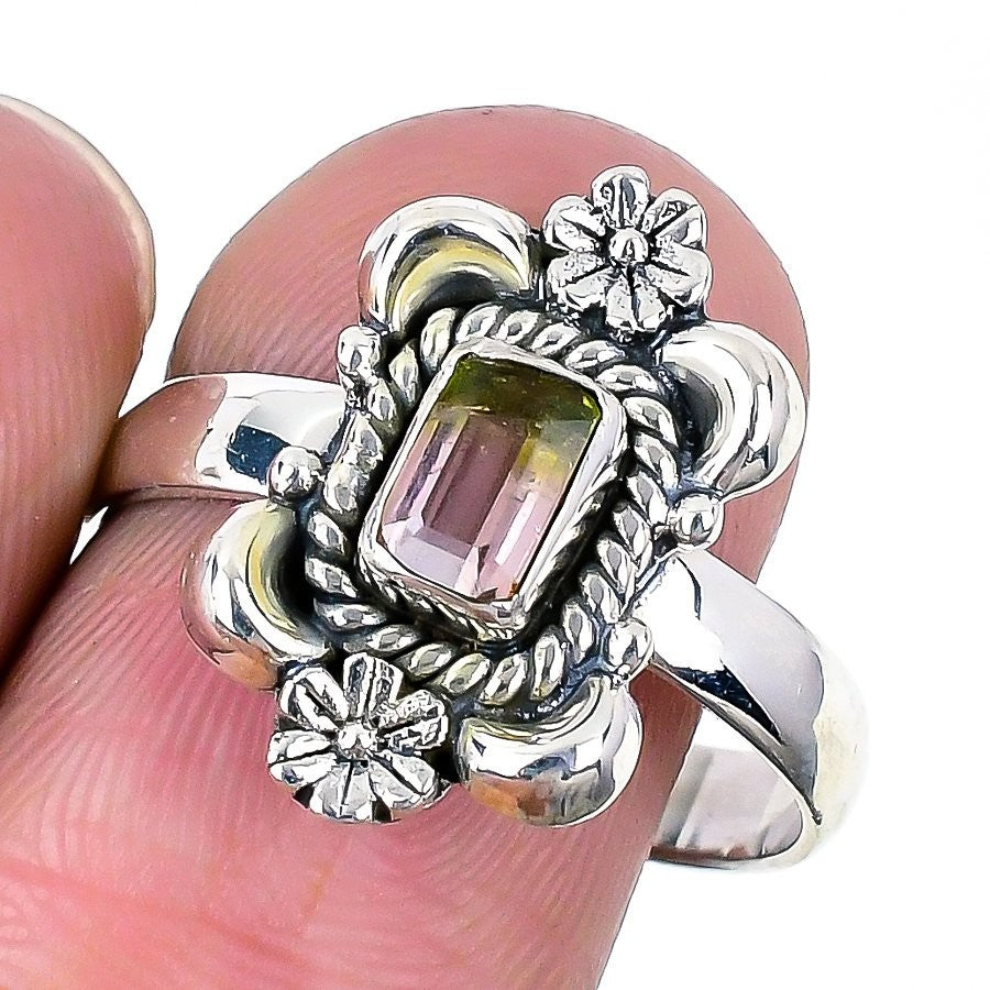 Watermelon Tourmaline Faceted Gemstone Solid Silver Statement New Ring Size 9.5