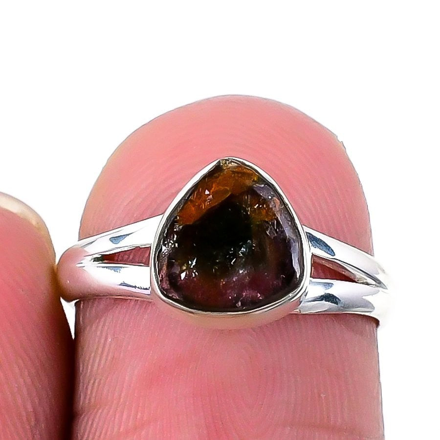 Watermelon Tourmaline Gemstone 925 Silver Mother Artisan Statement Ring Size 6