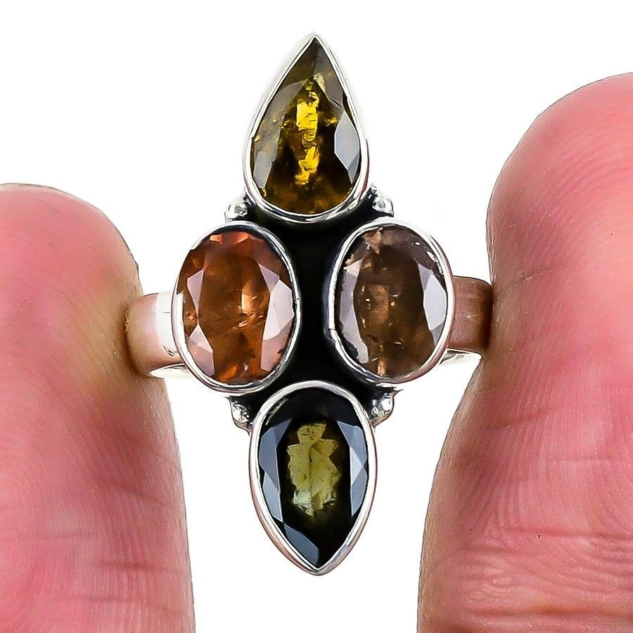 Watermelon Tourmaline Stone 925 Silver Statement Boho Anniversary New Ring US 6