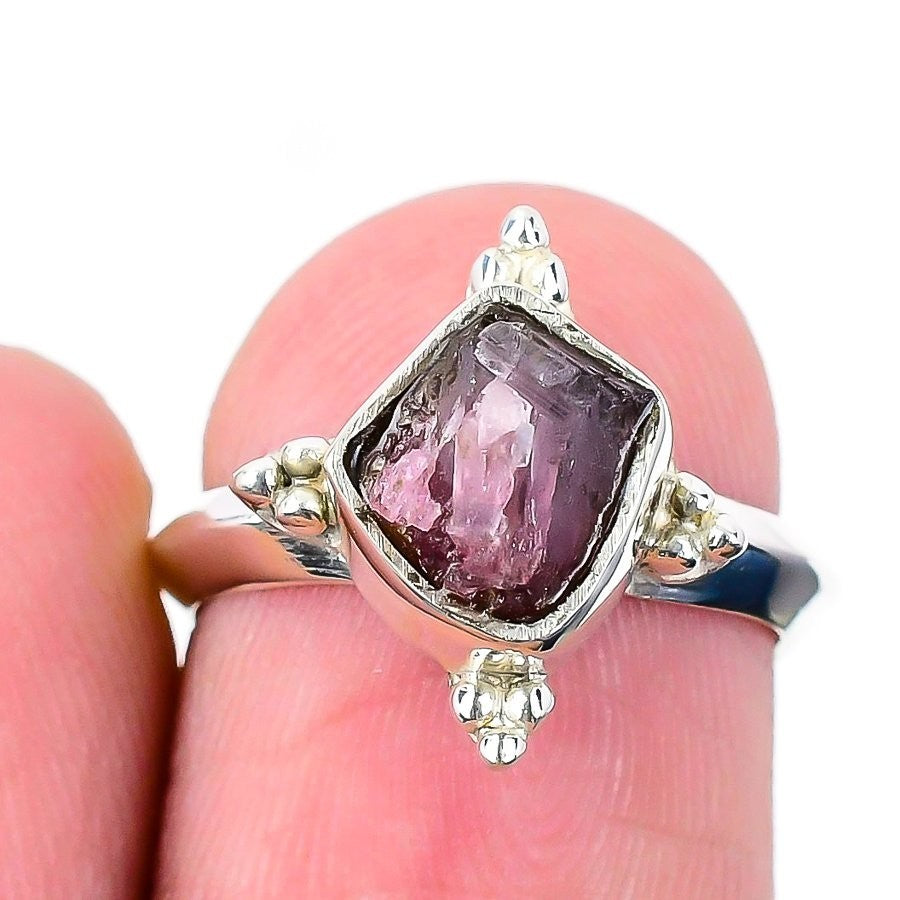 Watermelon Tourmaline Stone Statement Engagement Ring Jewelry Solid Silver US 6