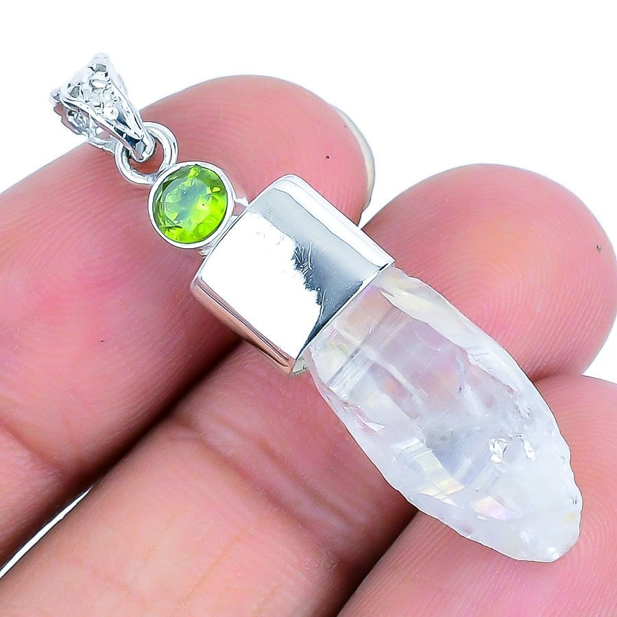 White Aura Crystal Stone Sterling Silver Bezel Anniversary Wife Pendant Jewelry