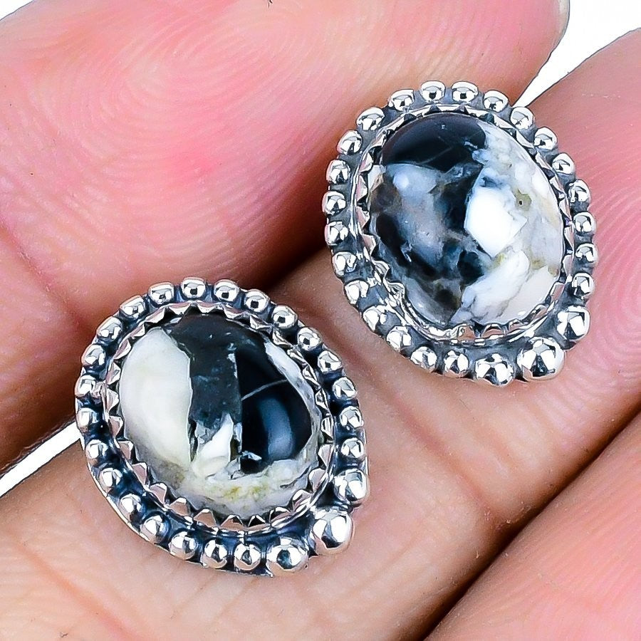 White Buffalo Stone 925 Silver Art Deco Daughters Day Stud Wife Earrings Jewelry