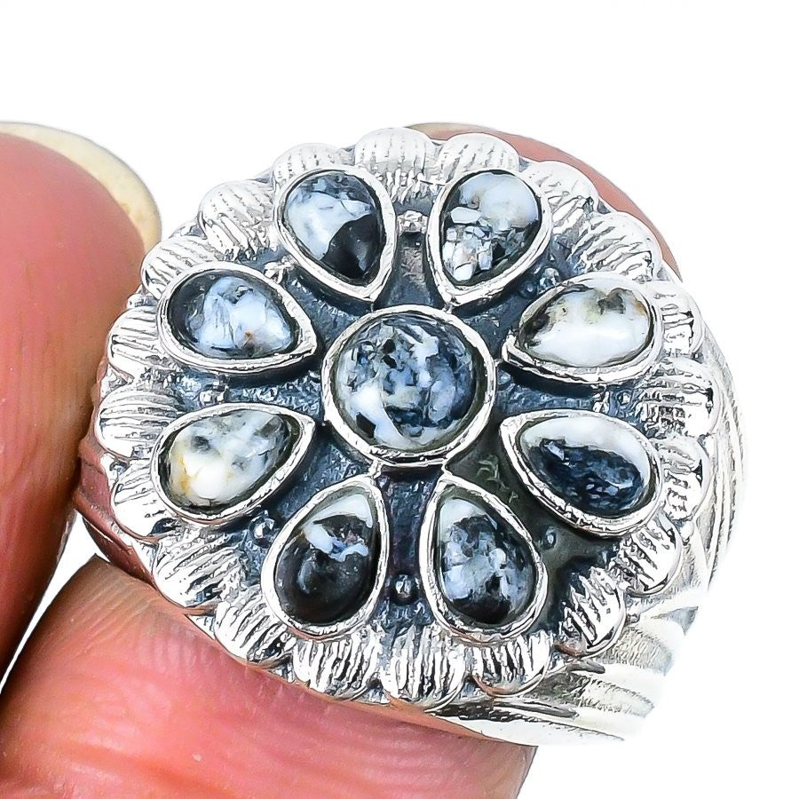White Buffalo Stone Handmade Statement Daughter Ring Solid Sterling Silver US 9
