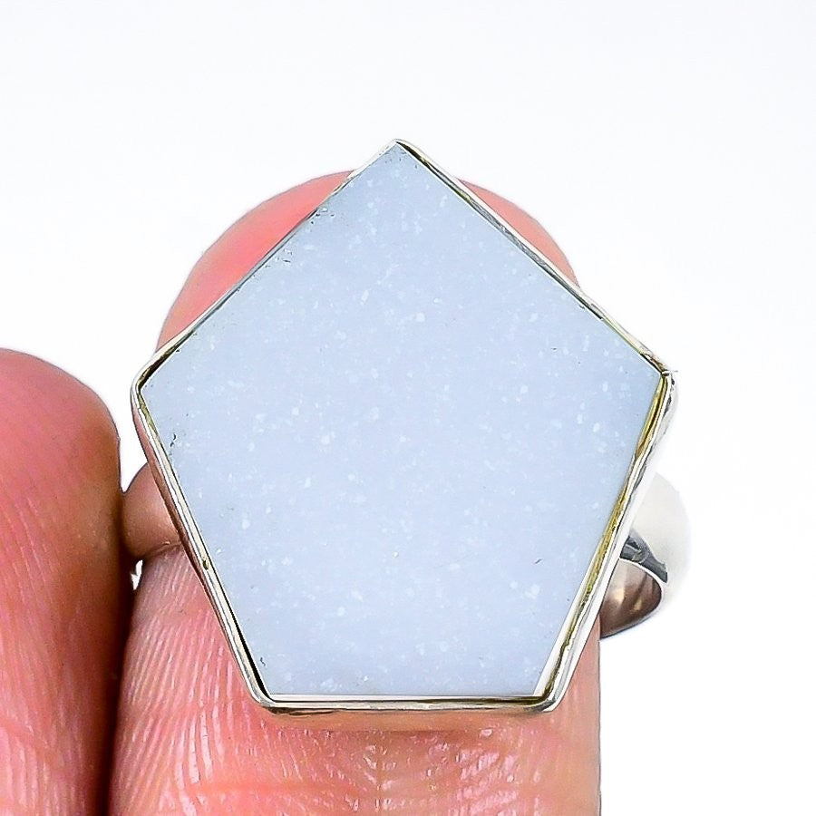 White Druzy Stone Sterling Silver Daughter Trendy Band Birthday Anniversary Ring