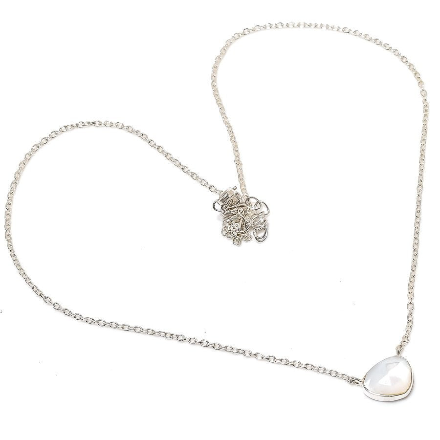White Monalisa Gemstone Solid Silver Trendy Chain Daughter Gift Necklace Jewelry