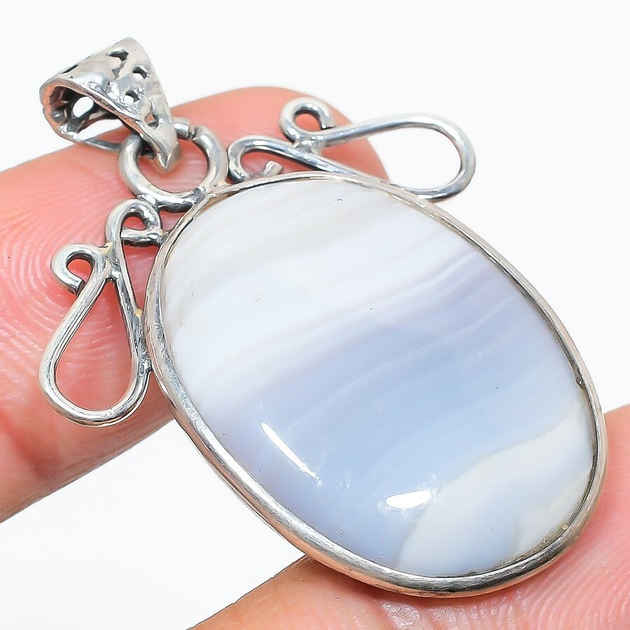 Womens day Deal Blue Lace Agate Gemstone Daughter New Pendant Jewelry 925 Silver