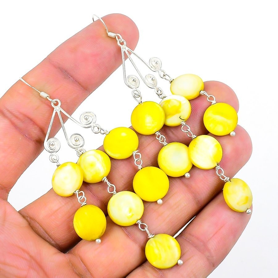 Yellow Pearl Stone Solid Sterling Silver Hook Wedding Dangle Drop Wife Earrings