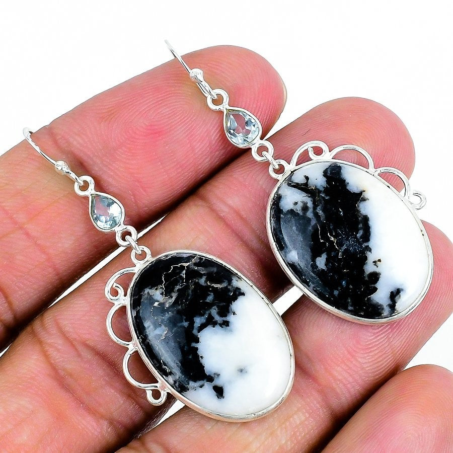 Zebra Jasper Stone Engagement Dangle Drop Earrings Jewelry Solid Sterling Silver