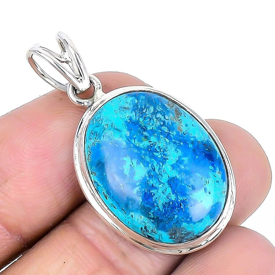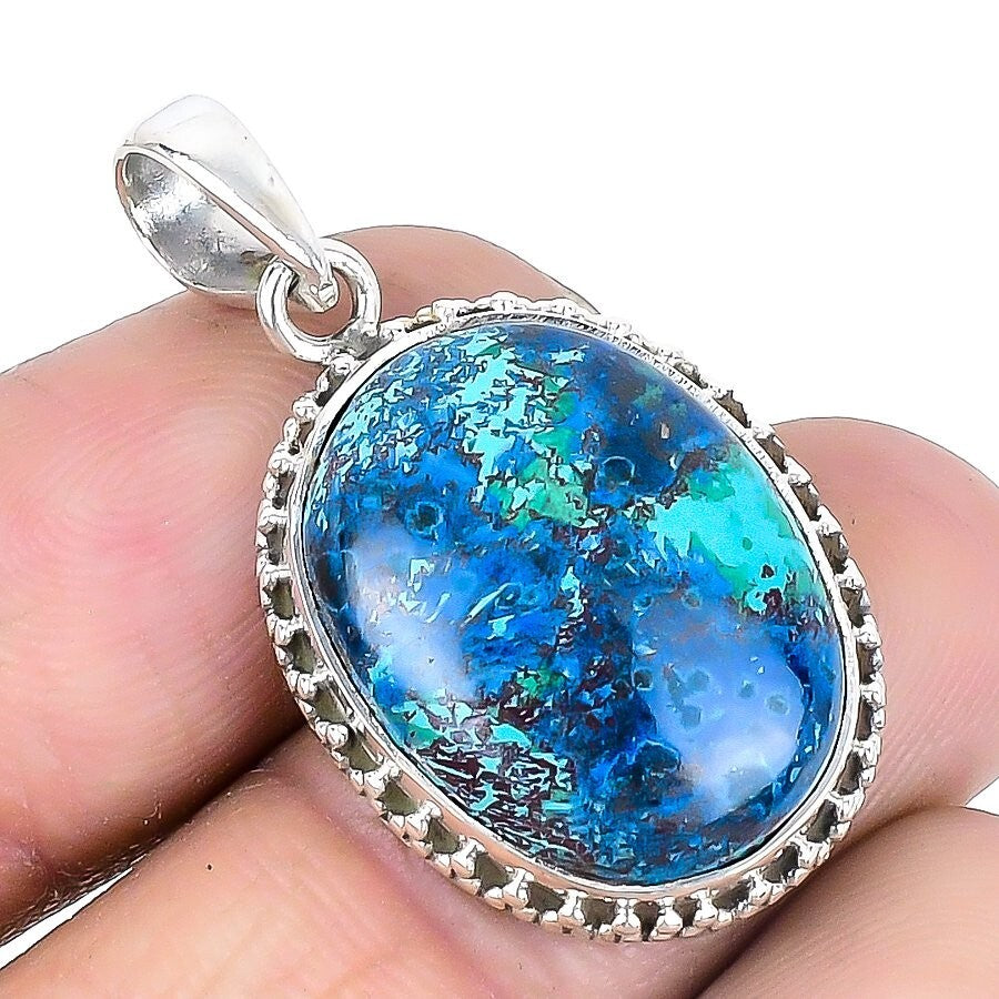 Chrysocolla Gemstone Sister Wedding Artisan Anniversary Boho Pendant 925 Silver