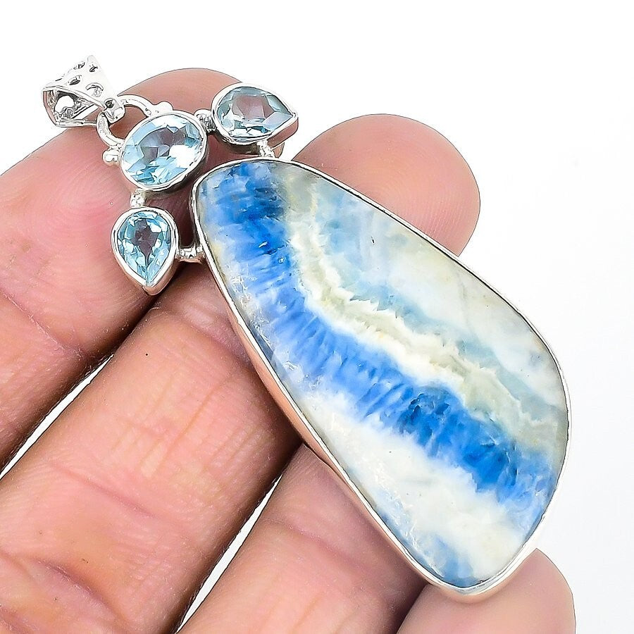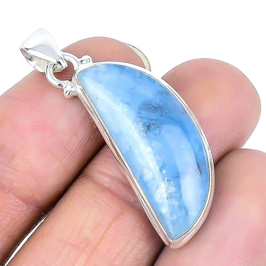 Blue Scheelite Gemstone Wedding Wife Anniversary Birthday Pendant Solid Silver