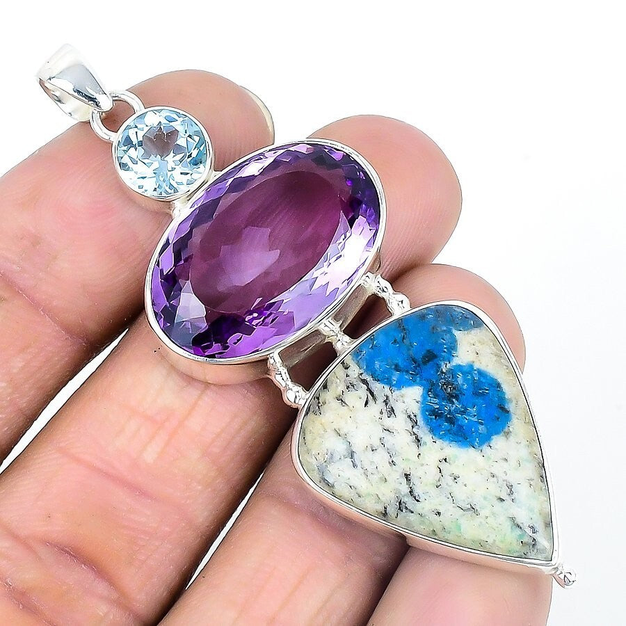K2 Blue Azurite Stone 925 Sterling Silver Ethnic Mother Handmade Pendant Jewelry