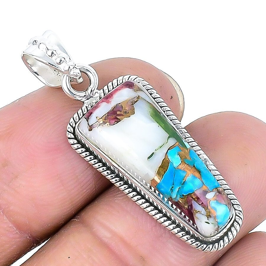Spiny Oyster Stone Birthday Handcrafted Anniversary New Pendant 925Ā SolidĀ Silver