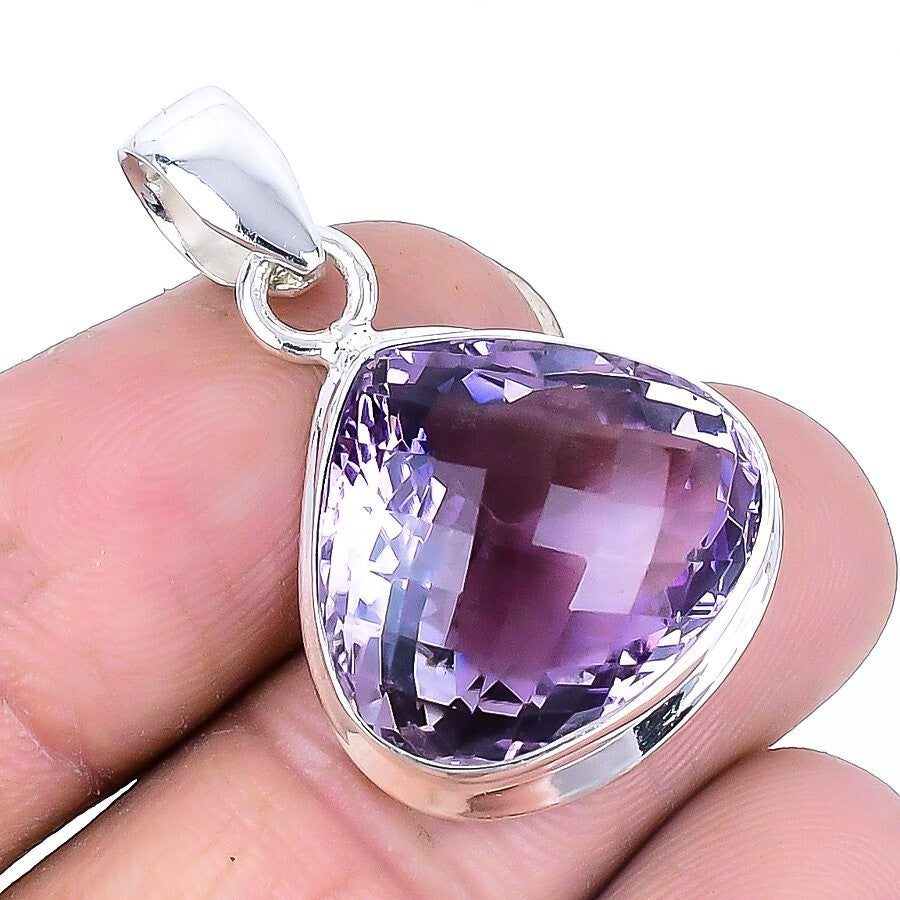 Crown Chakra Amethyst Faceted Gemstone Sister Wedding Pendant 925Ā SolidĀ Silver