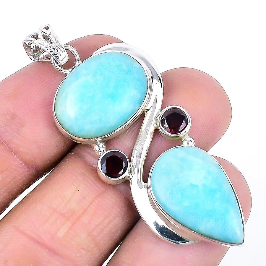Natural Republic Larimar 925Ā SolidĀ Silver Anniversary Birthday Pendant Jewelry