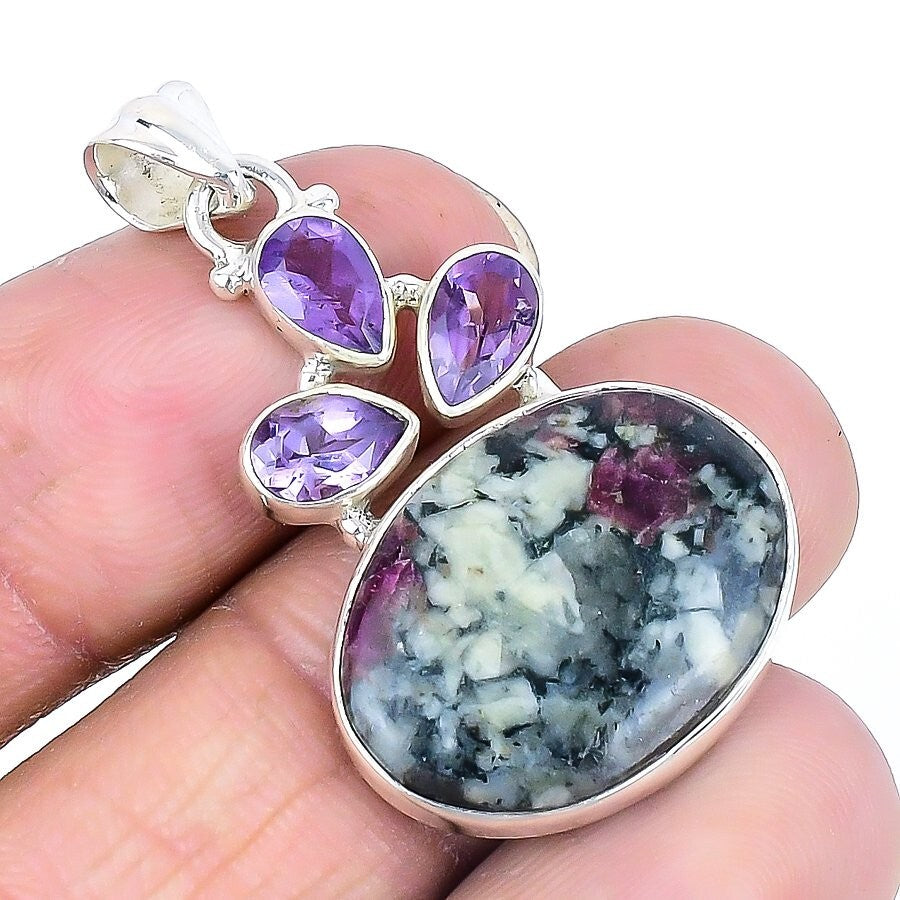 Natural Eudialyte Sterling Silver Wedding Wife Handmade Ethnic Elegant Pendant