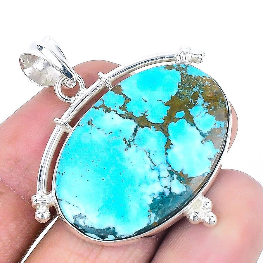 Tibetan Turquoise Stone Solid Silver Mother Birthday Engagement Pendant Jewelry