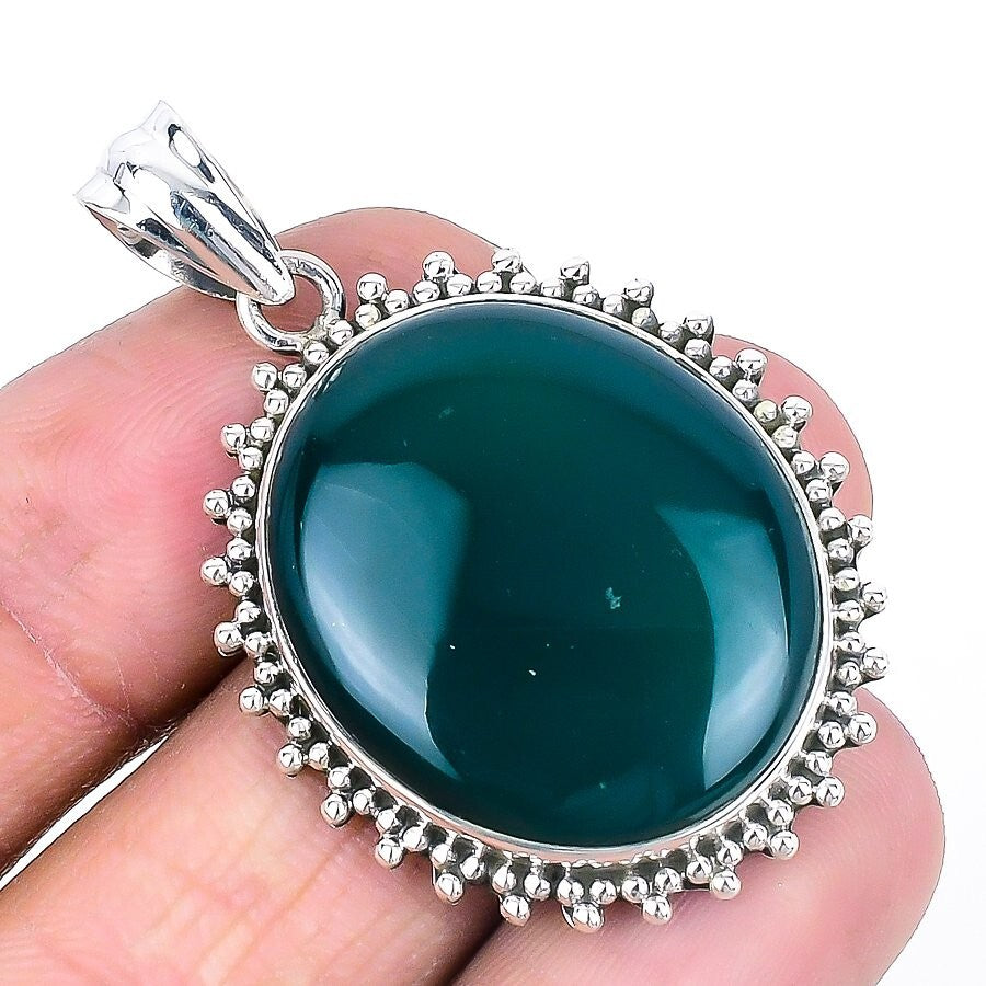 Green Onyx Gemstone 925 Silver Elegant Mother Unique Anniversary Wedding Pendant
