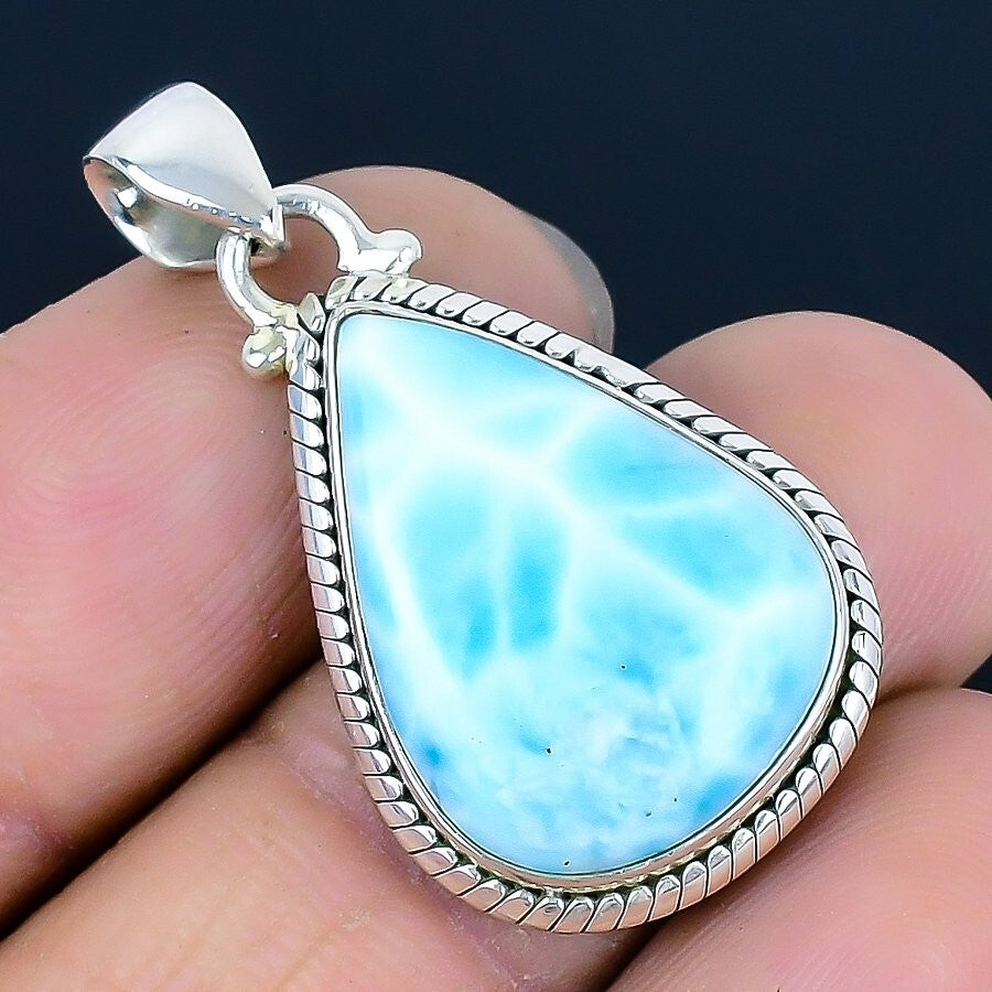 Republic Larimar Stone Birthday Wedding New Boho Elegant Pendant Solid Silver
