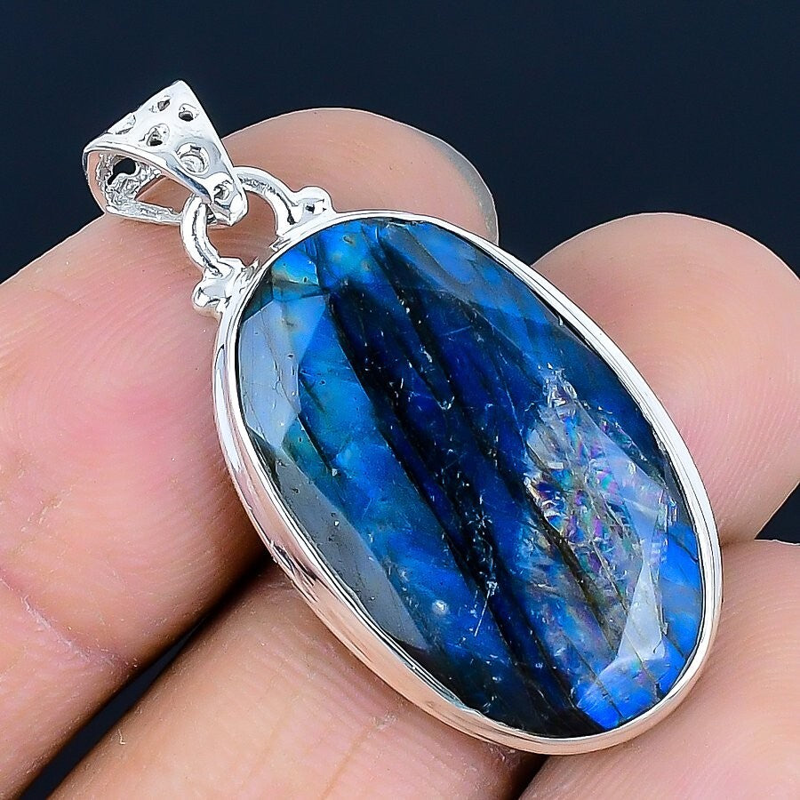 Labradorite Faceted Stone 925 Sterling Silver Engagement Unique Pendant Jewelry