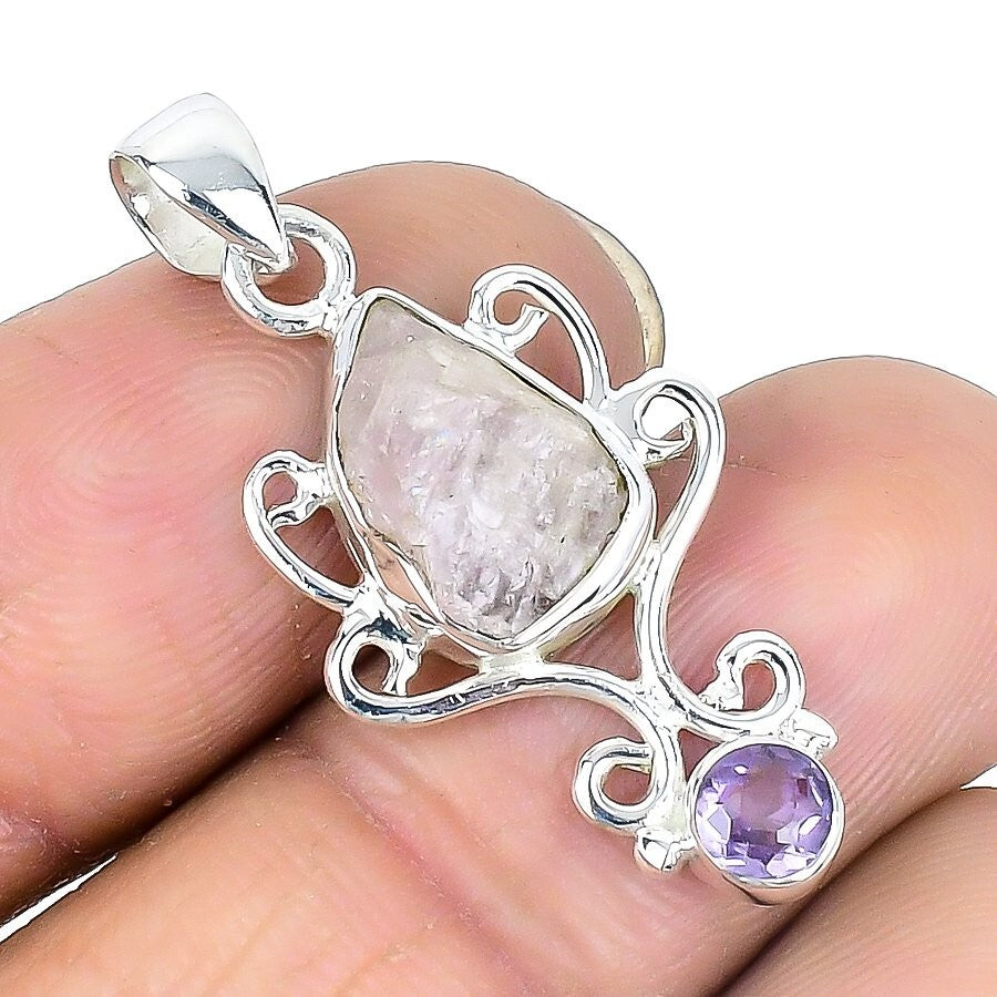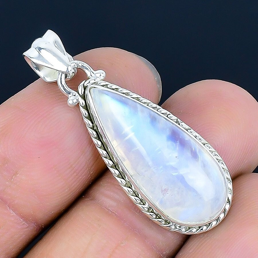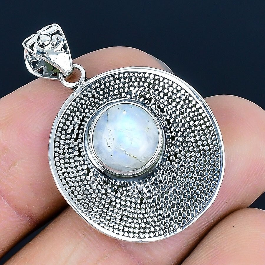 Rainbow Moonstone Stone 925 Silver Mother Handcrafted Artisan Birthday Pendant