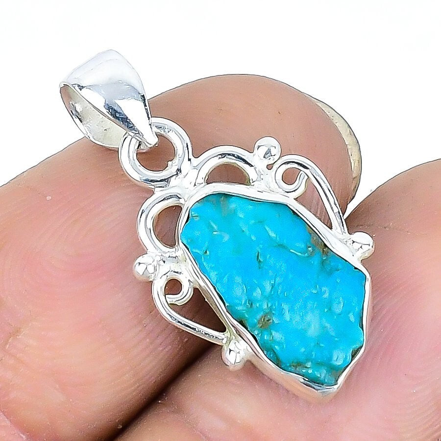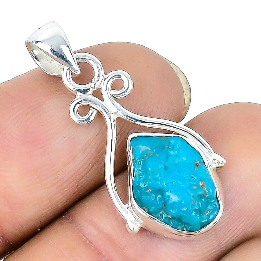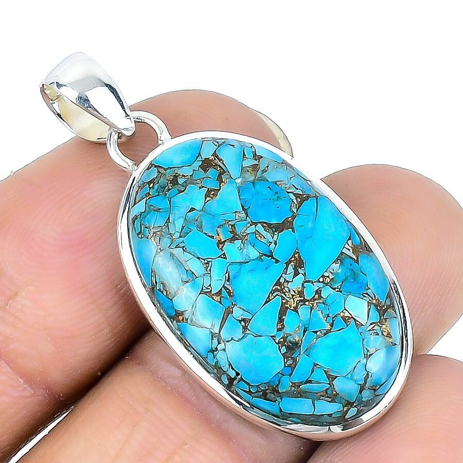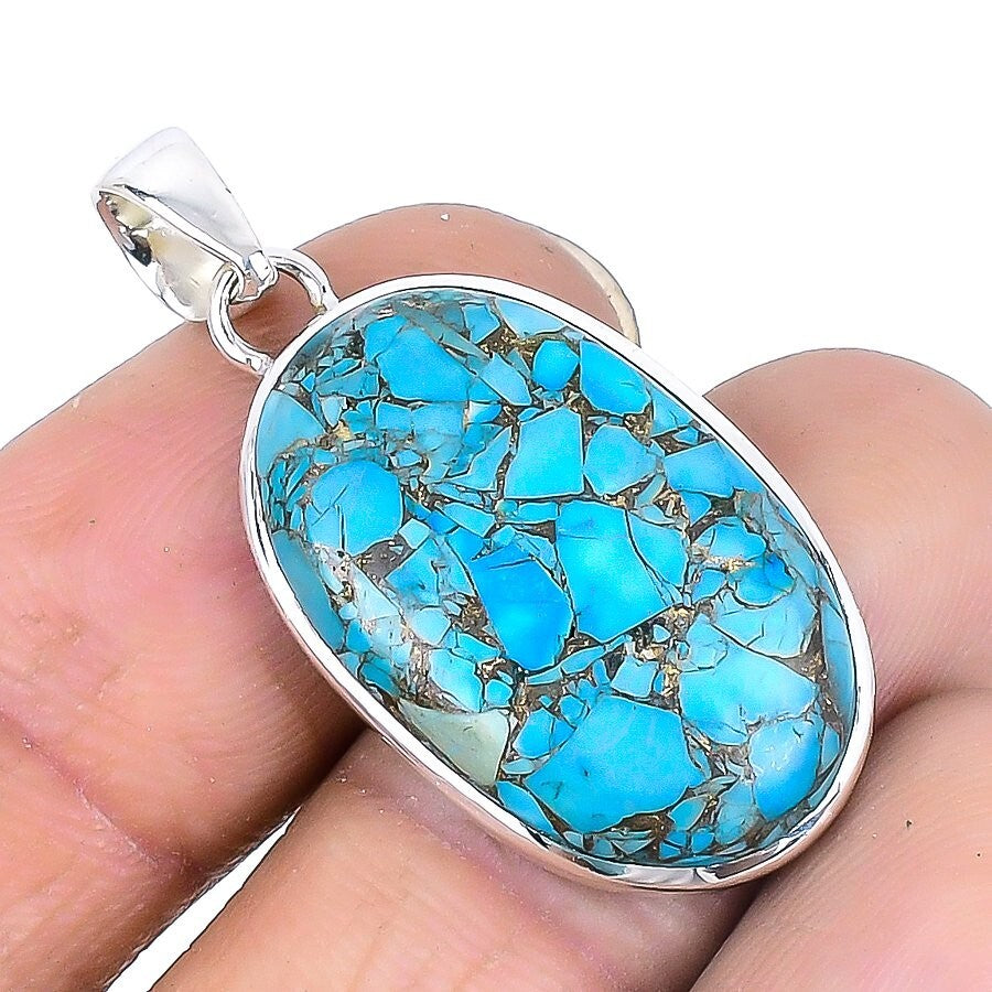 Copper Blue Turquoise Gemstone Solid Sterling Silver December Elegant Pendant