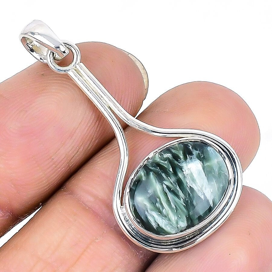Natural Seraphinite 925 Solid Silver Ethnic Wife Unique Wedding Pendant Jewelry