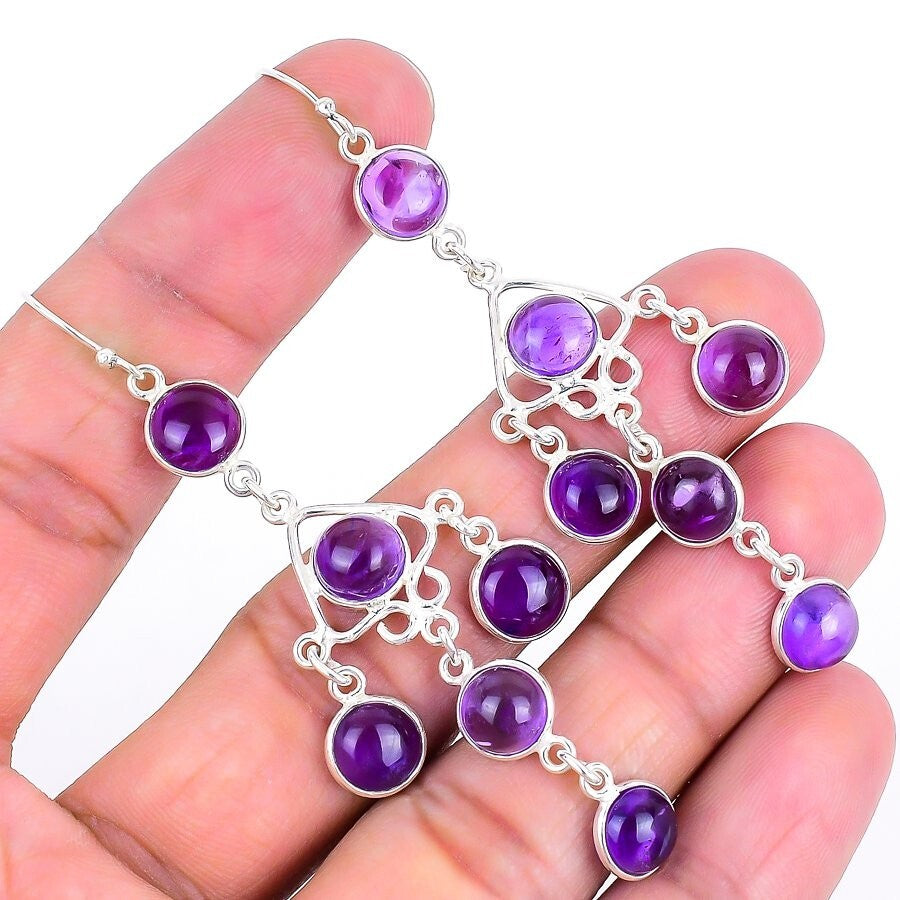 Sage Amethyst Gemstone Solid Sterling Silver Mother Drop Dangle Earrings Jewelry