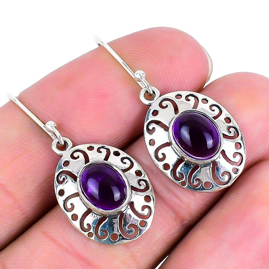 Sage Amethyst Stone Solid Sterling Silver Boho Drop Hook Mother Earrings Jewelry