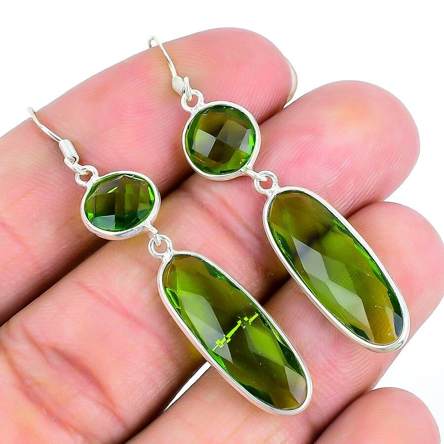 Peridot Treated Glass Gemstone Hook Birthday Dangling New Earrings 925 Silver