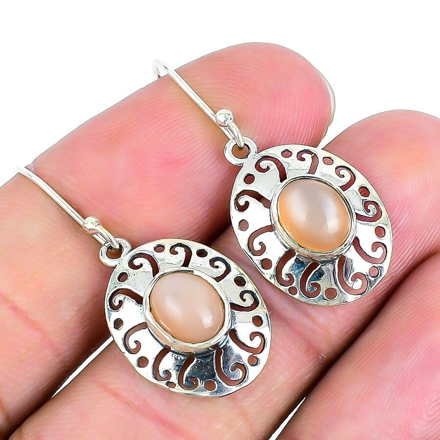 Sunstone Gemstone Solid Silver Elegant Hook Sister Dangling Bezel New Earrings