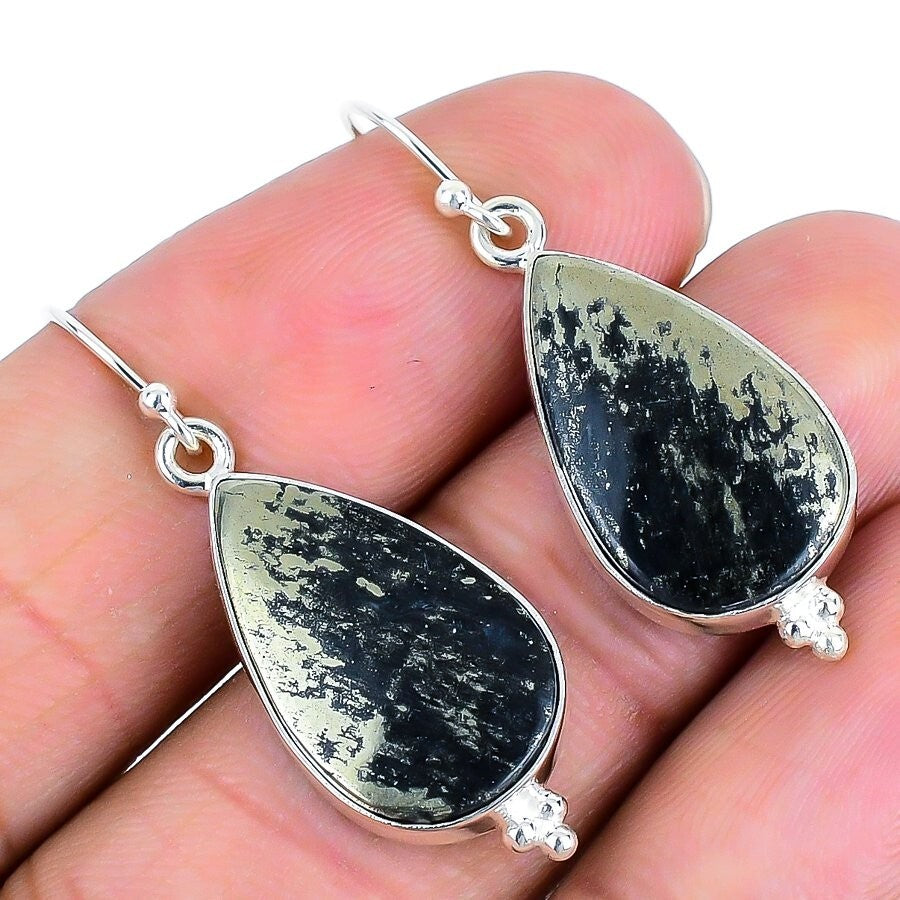 Natural Pyrite Agate Bezel Anniversary Hook Dangle Earrings Jewelry Solid Silver