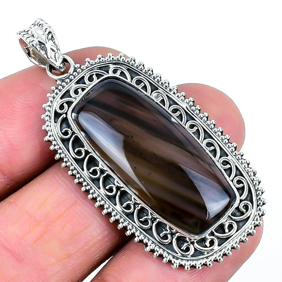 Montana Agate Stone 925 Sterling Silver Elegant Handmade Sister Pendant Jewelry