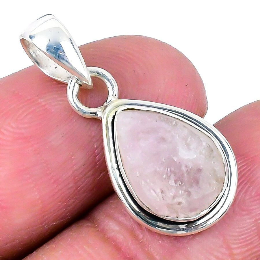 Heart Chakra Rose Quartz Gemstone 925 Silver Wedding Handcrafted Pendant Jewelry