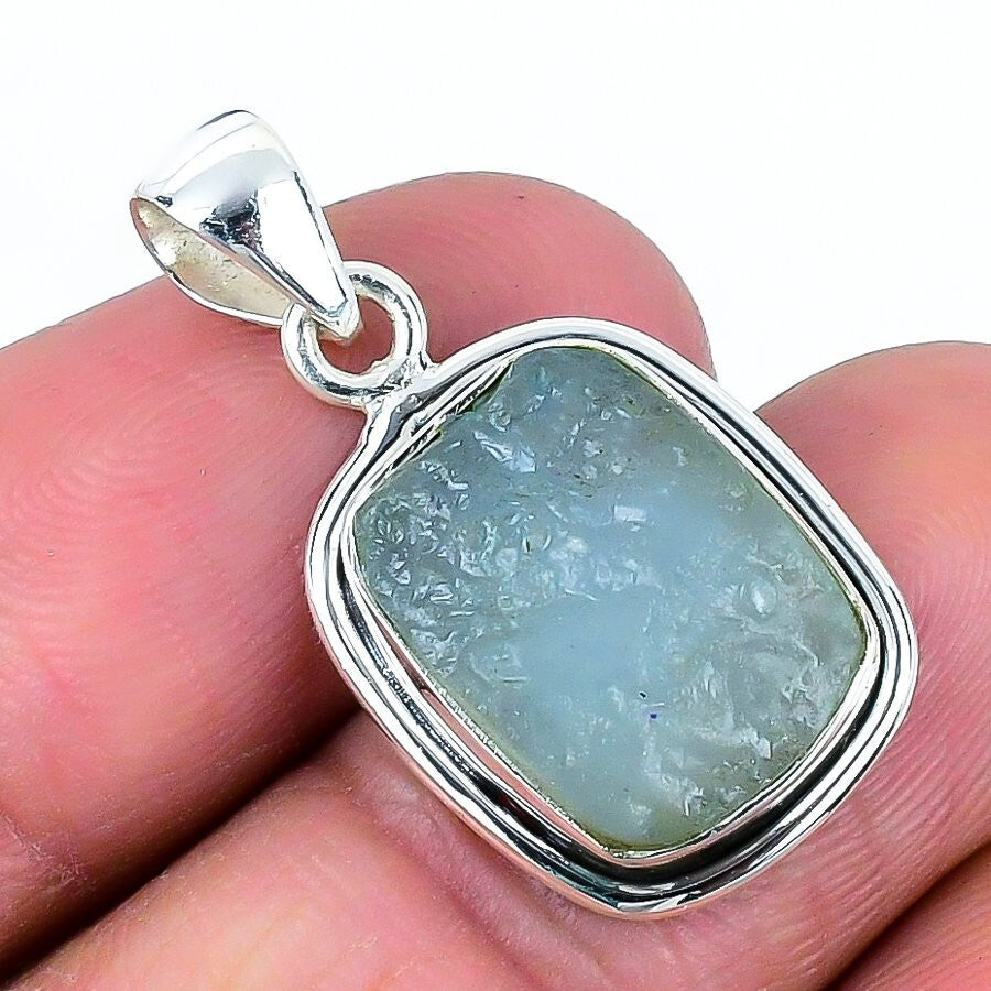 Natural Aquamarine 925 Solid Silver Handmade Anniversary Mother March Pendant