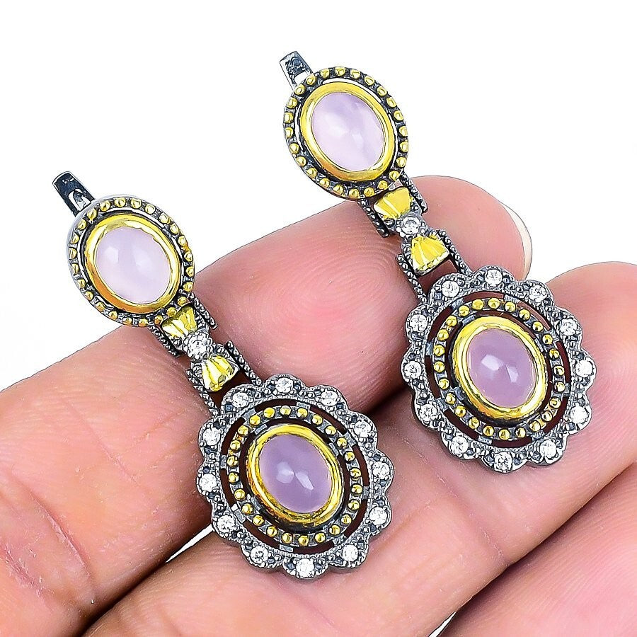 Rosequartz Gemstone 925 Sterling Silver Sister Dangling Elegant Earrings Jewelry