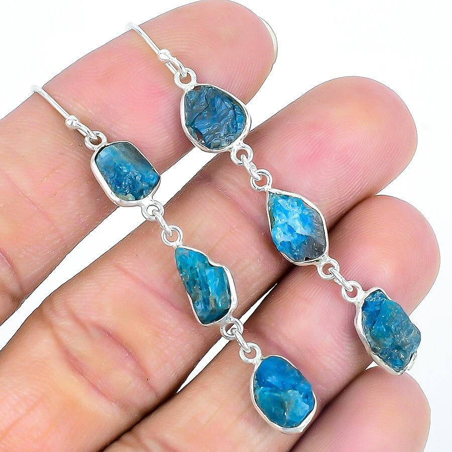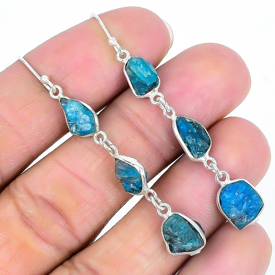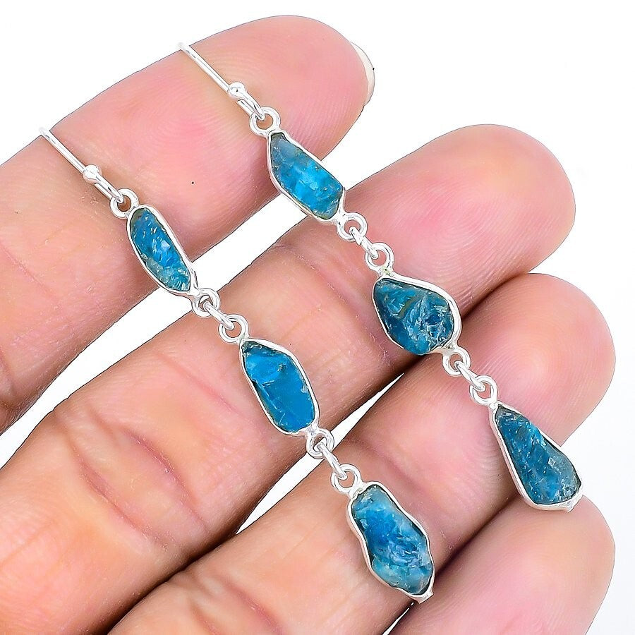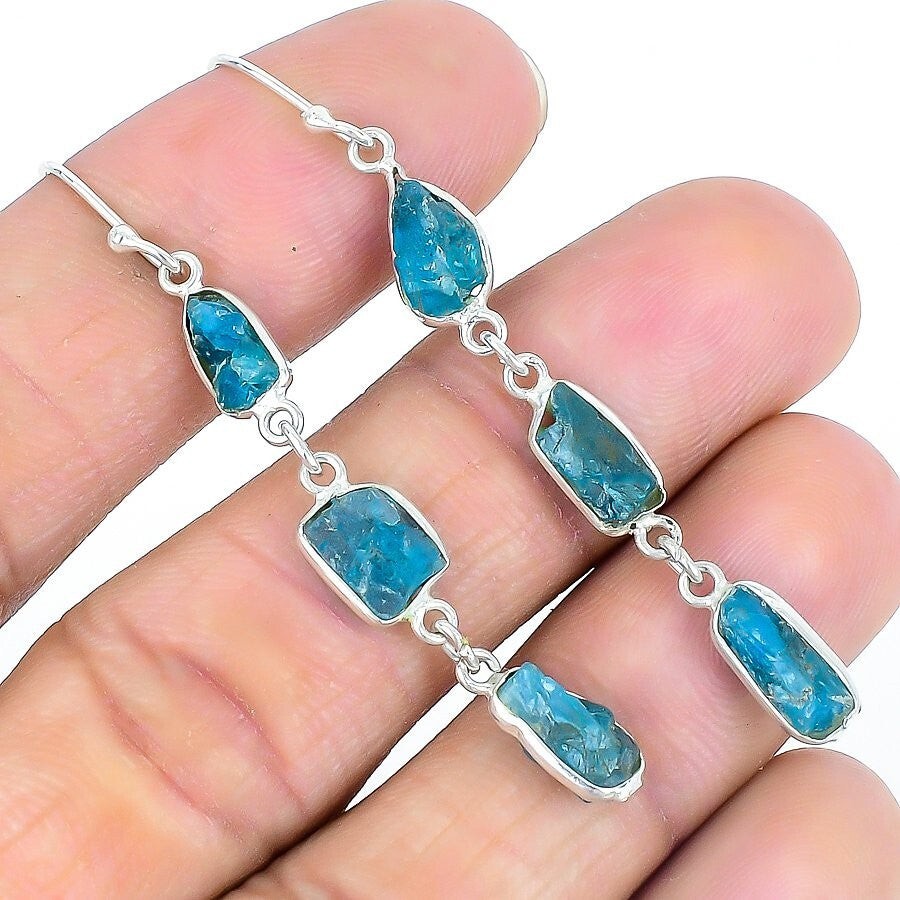 Apatite Druzy Stone 925 Sterling Silver Daughter Boho Dangle Drop Hook Earrings