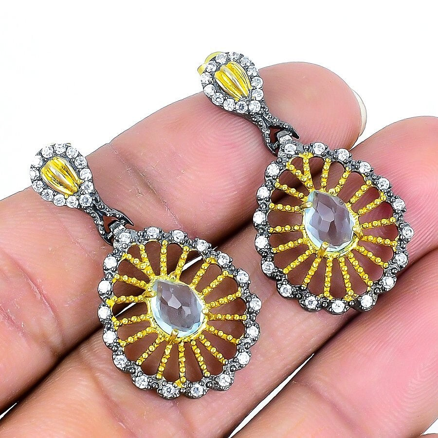 Crystal Quartz Faceted Gemstone Sister Hook Dangle New Earrings 925 Solid Silver