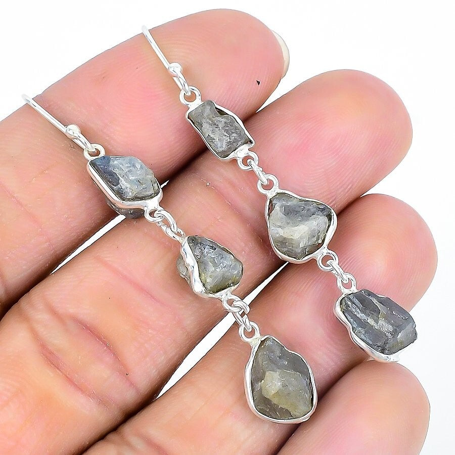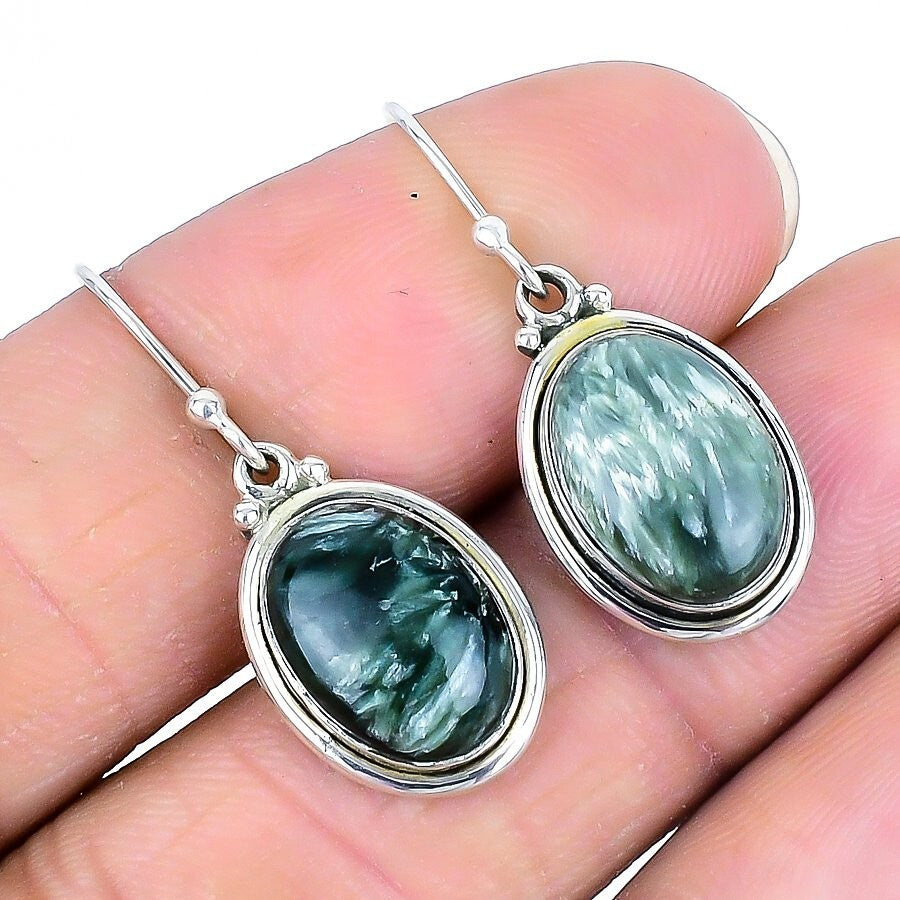 Seraphinite Gemstone Solid Silver Boho Dangle Drop Anniversary Daughter Earrings